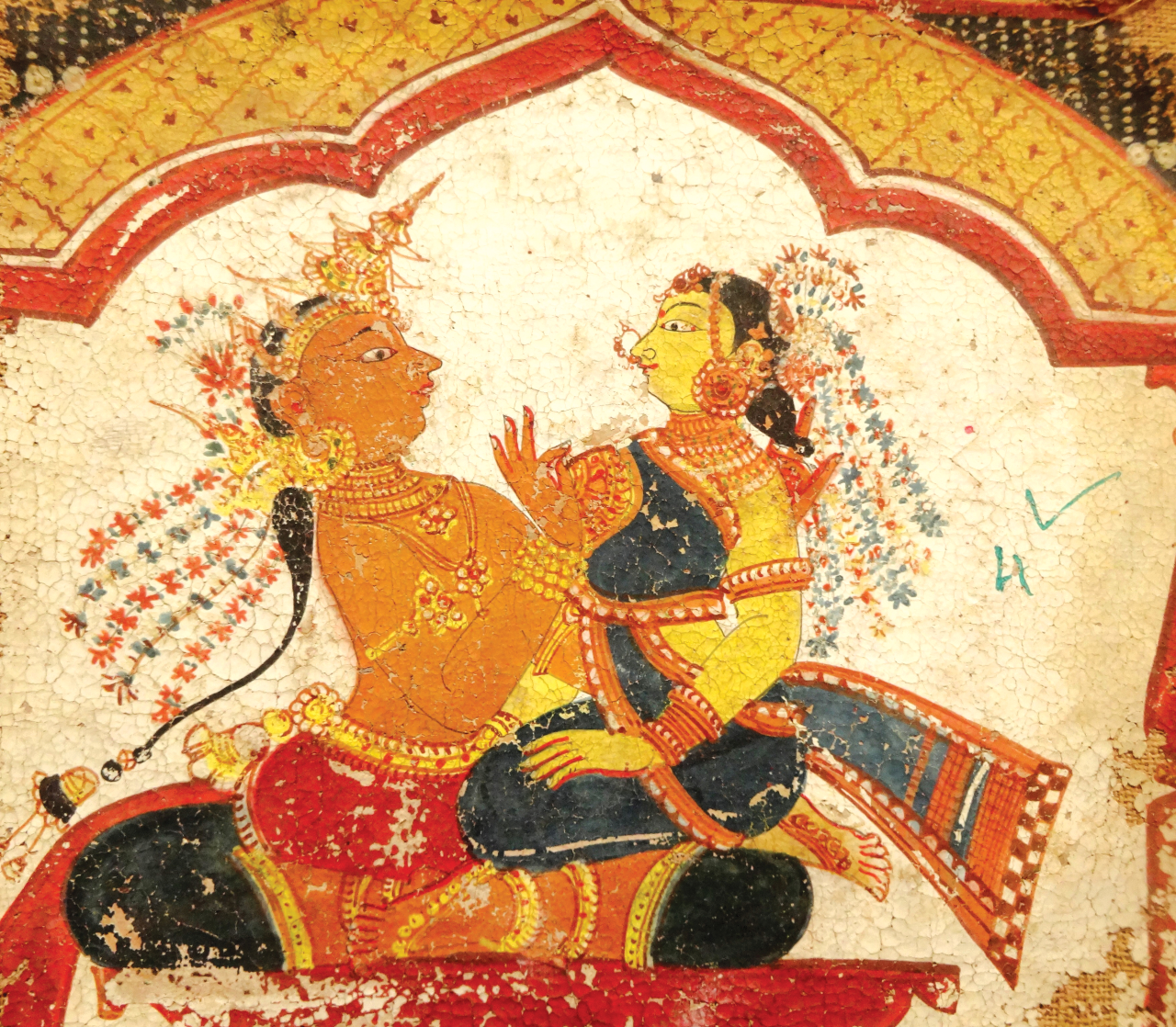 দুই প্রেমিক (সম্ভবত কোদবা রাগ)। কাপড়ের ওপর রঞ্জক পদার্থ দিয়ে অঙ্কিত, যার কৌশল ওড়িশার পট্টচিত্রের সাথে ঘনিষ্ঠভাবে সাদৃশ্যপূর্ণ। ওড়িশা, সময়কাল আনুমানিক ১৮৫০ খ্রিস্টাব্দ। ব্যক্তিগত সংগ্রহ।
